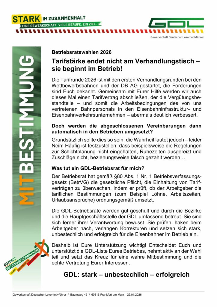 Tarifstärke endet nicht am Verhandlungstausch – sie beginnt im Betrieb! 22. Januar 2026 Peter Helbig Aushang, DB, Mitbestimmung, Wahlen 0
