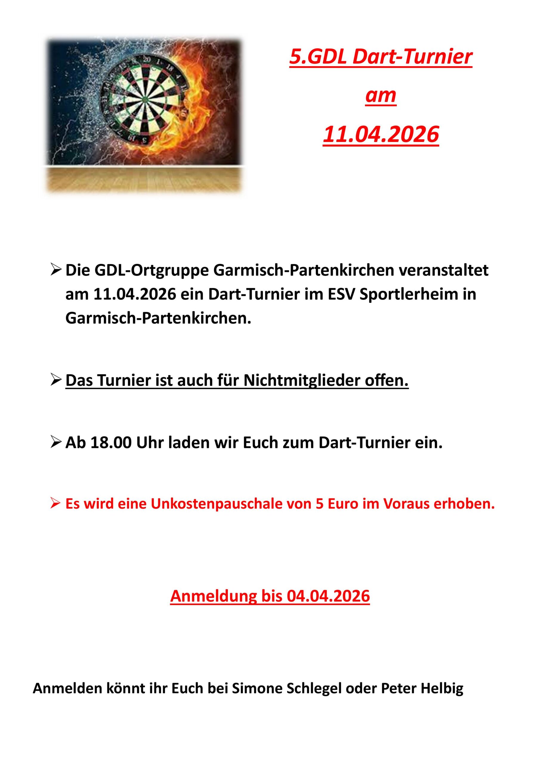 5. Dart-Turnier 9. März 2026 Peter Helbig Aushang, Termin 0 Dartboard Vector Illustration Isolated on White Background